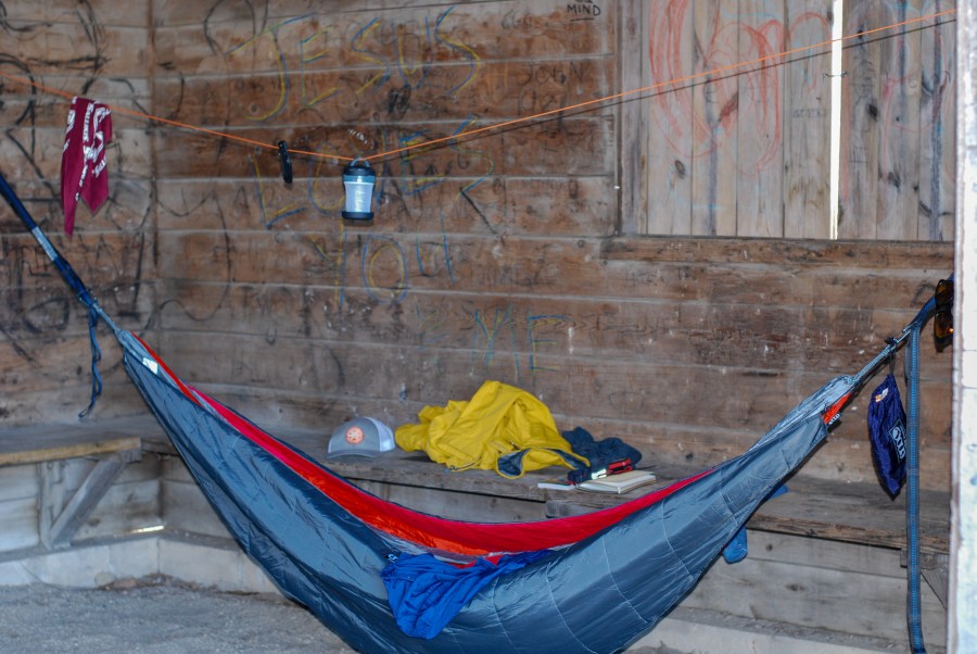 And don’t rely on historical temperature data when scheduling a trip. Even with my Eno under-quilt I didn’t feel insulated enough to sleep comfortably. I had to stop an a Sierra Trading Company and drop $$$ on a fancy sleeping bag to handle the 30ish degree nights.